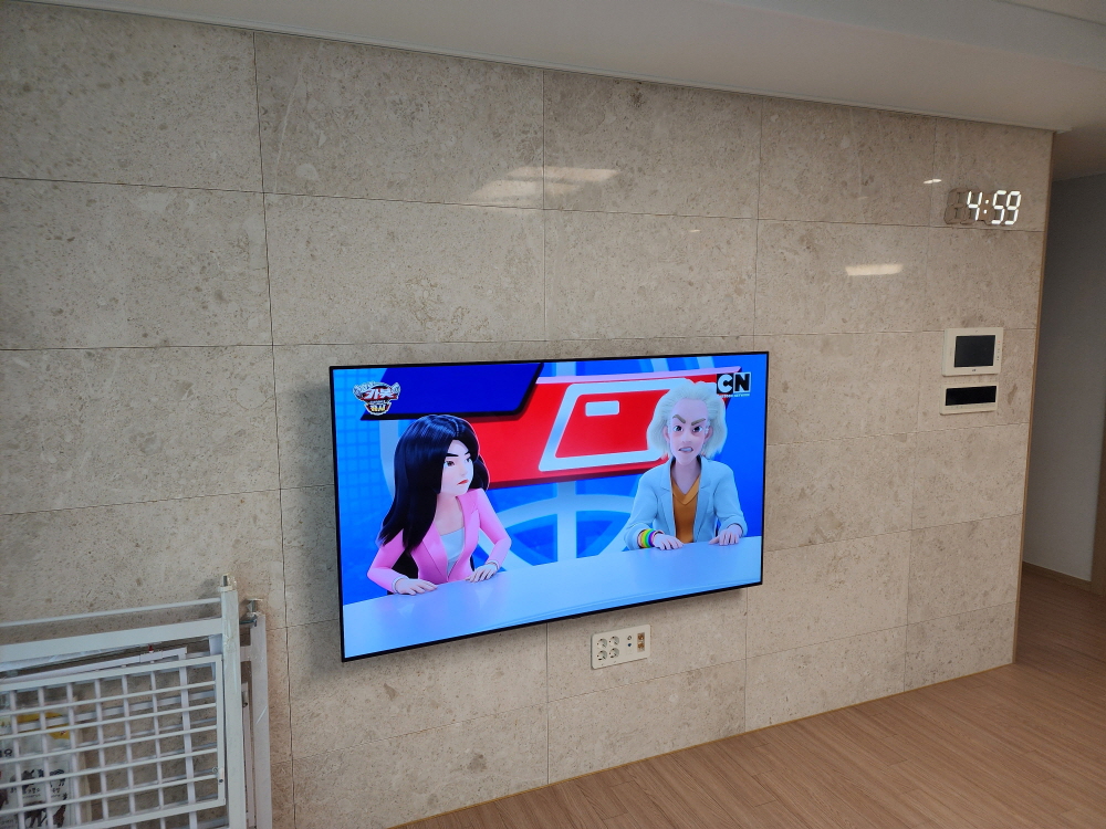 창원천장형티비설치 마산합포구 65인치천정티비설치 가게 음식점 카페 창원LED벽시계설치 김해LED벽시계설치 작업사진 루나백라이트LED벽시계선숨김설치