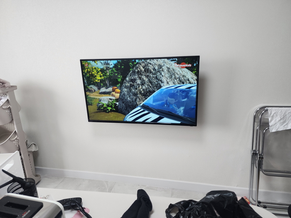 50인치대 TV설치 + 기가지니3거치대설치 진행 작업사진