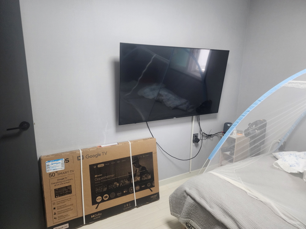 창원벽걸이티비설치 성산구대원동 상하각도형브라켓TV설치 셋탑박스공유기모뎀멀티탭숨김정리 부산벽걸이TV설치 영도 고장난TV철거후 새로운티비설치 작업사진