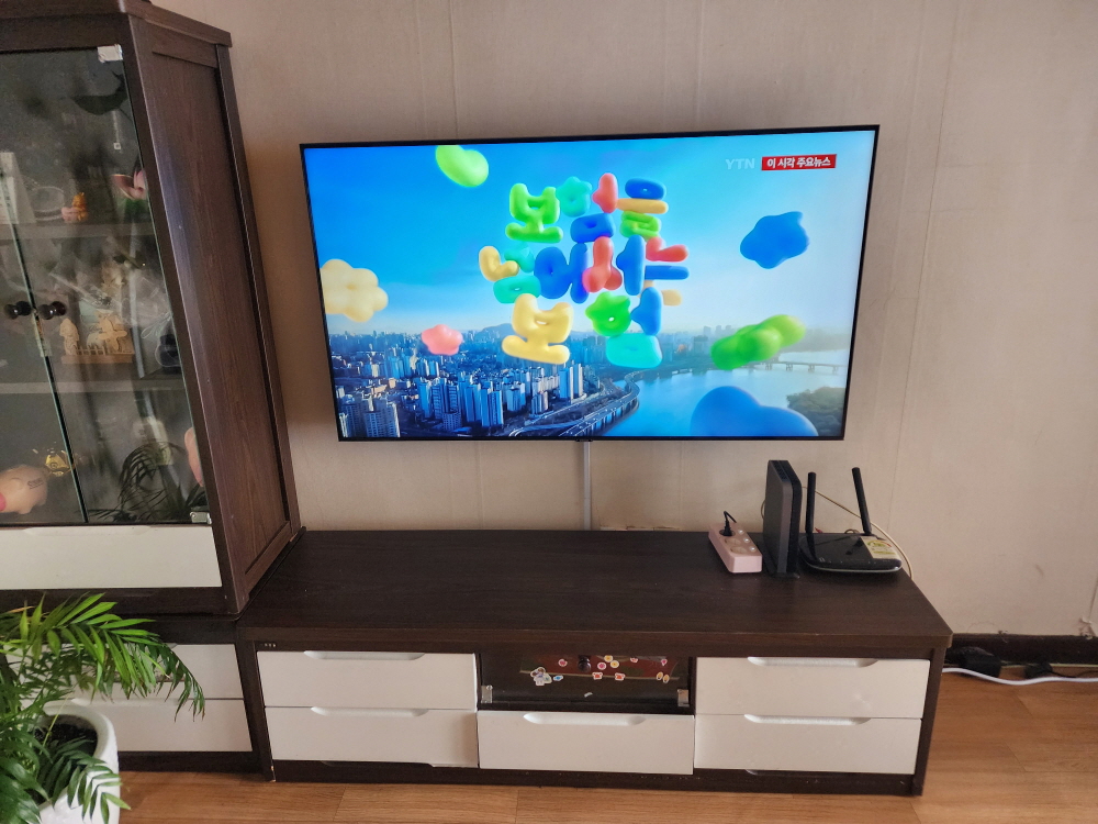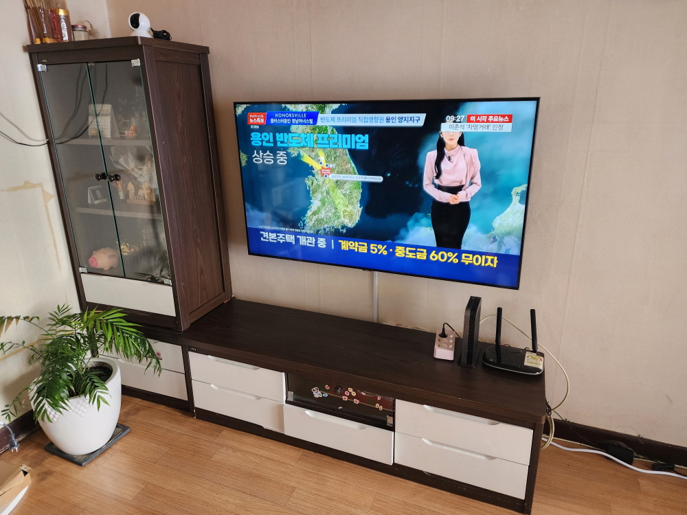 창원벽걸이티비설치 성산구대원동 상하각도형브라켓TV설치 셋탑박스공유기모뎀멀티탭숨김정리 부산벽걸이TV설치 영도 고장난TV철거후 새로운티비설치 작업사진