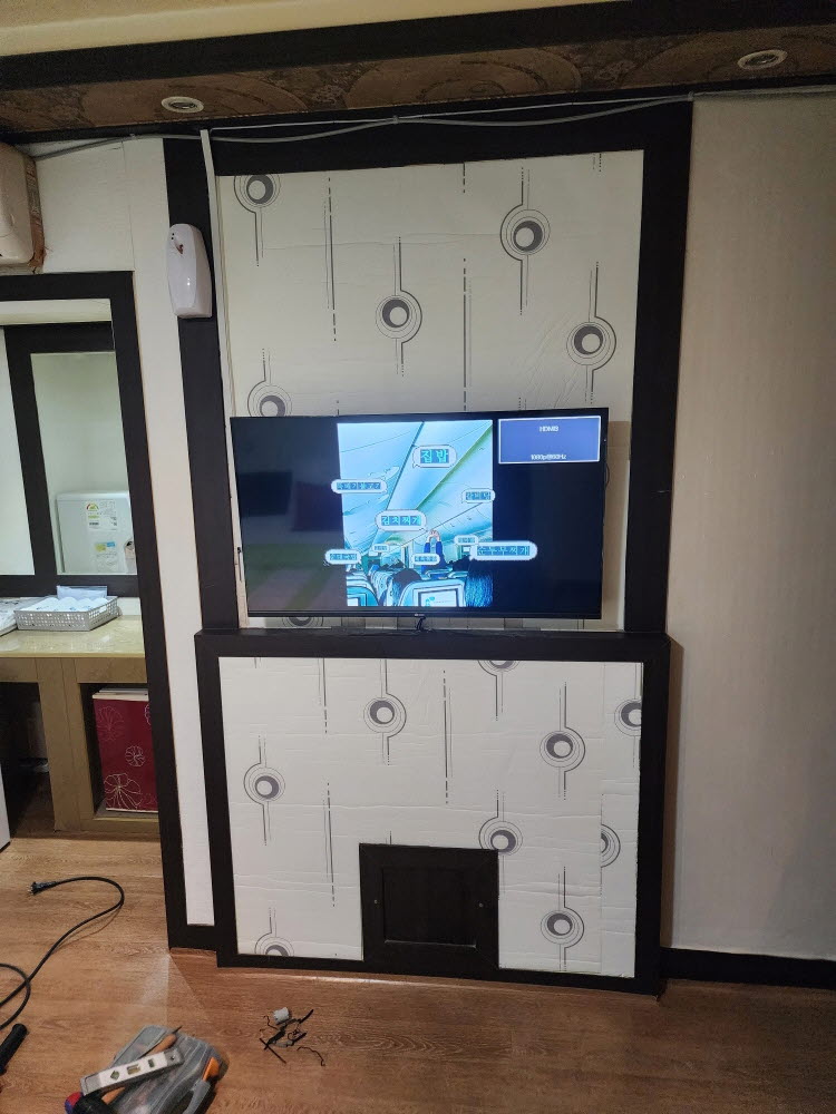 창원천장형티비설치 마산합포구 65인치천정티비설치 가게 음식점 카페 창원LED벽시계설치 김해LED벽시계설치 작업사진 루나백라이트LED벽시계선숨김설치
