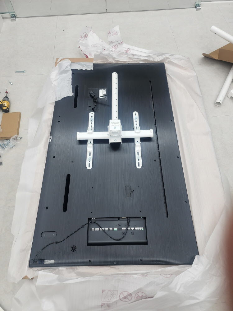 창원천장형티비설치 성산구 학원 65인치 사이니지 세로설치 작업사진 부산벽걸이티비설치 상하좌우각도브라켓설치 셋탑박스공유기TV선정리 작업사진