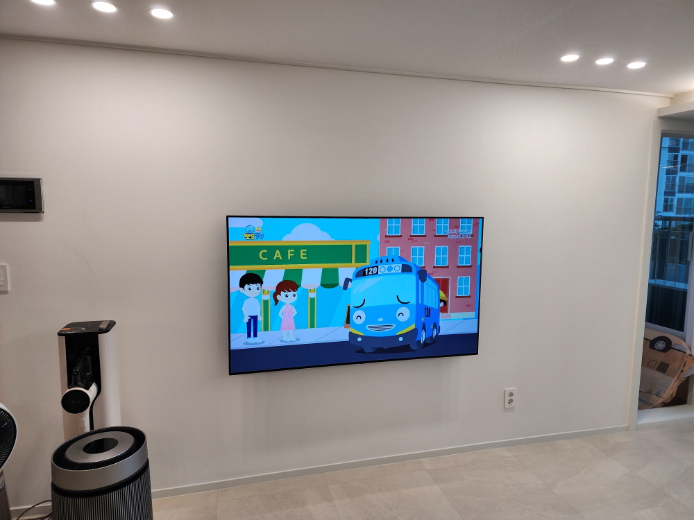 창원벽걸이티비설치 성산구대원동 상하각도형브라켓TV설치 셋탑박스공유기모뎀멀티탭숨김정리 부산벽걸이TV설치 영도 고장난TV철거후 새로운티비설치 작업사진