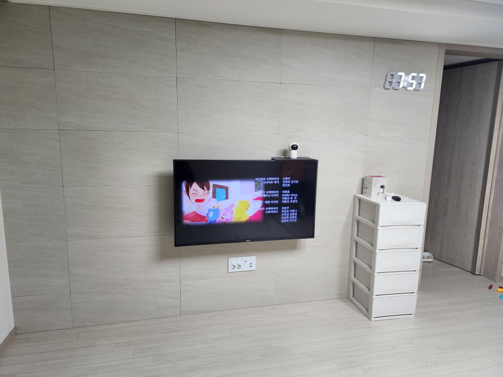 창원벽걸이티비설치 성산구대원동 상하각도형브라켓TV설치 셋탑박스공유기모뎀멀티탭숨김정리 부산벽걸이TV설치 영도 고장난TV철거후 새로운티비설치 작업사진