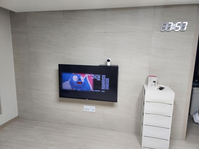 창원천장형티비설치 마산합포구 65인치천정티비설치 가게 음식점 카페 창원LED벽시계설치 김해LED벽시계설치 작업사진 루나백라이트LED벽시계선숨김설치